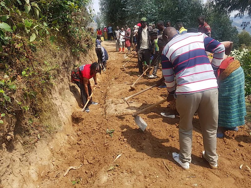 Uyu muganda wibanze ku bikorwa byo kurwanya isuri hasiburwa inzira z’amazi mu muhanda uva ku Kagari ka Rwaza ujya ku Mudugudu wa Murama muri aka Kagari.